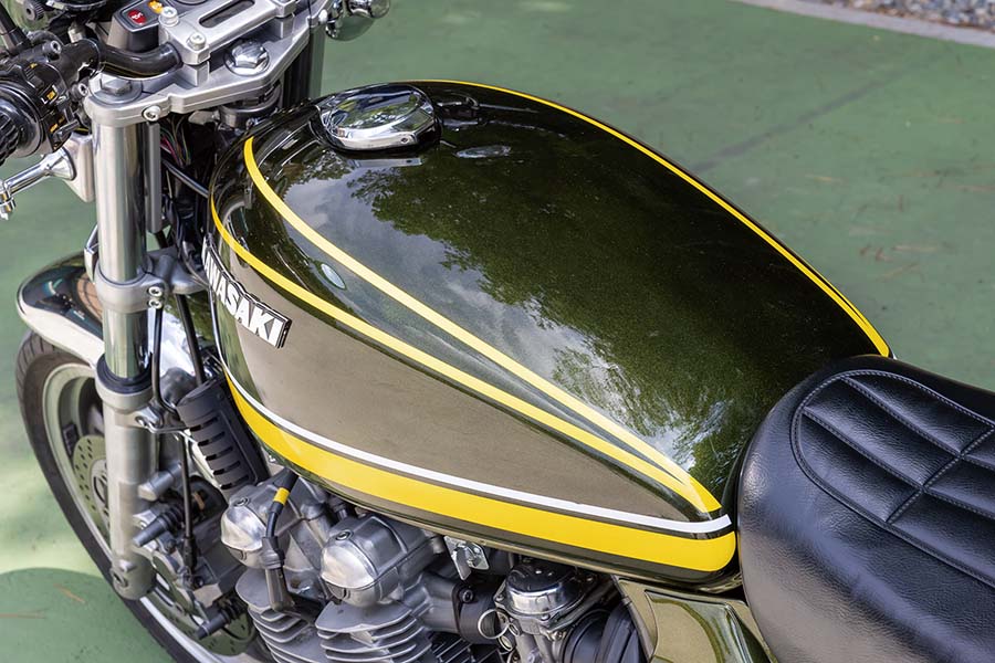 「ドレミの外装キットに話を戻せば、手に入れたゼファーの外装を綺麗に仕立てようにも、中古でも純正部品は高いし経年劣化は免れない。例えばネットオークションで程度の良いゼファー750のタンクを探すと10万円以上もザラ。それならほぼ同額、あるいは安く手に入る新品(同社のZ2タイプスチールタンクは10万450円〜)の方が良いという判断。さらに言えば、弊社のZ2タイプ外装に替えた中古車はなにせ綺麗に見えますから、販売店のウケもよく高値取り引きされているそうです。