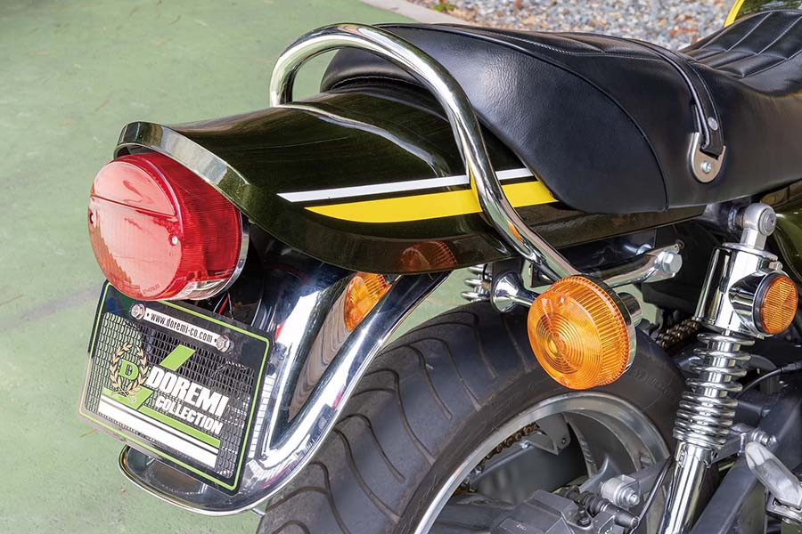 鉄メッキリアフェンダー(赤ランプ付き・5万3900円)が醸す往時のZ風イメージもカスタム感を寄り引き立てる。