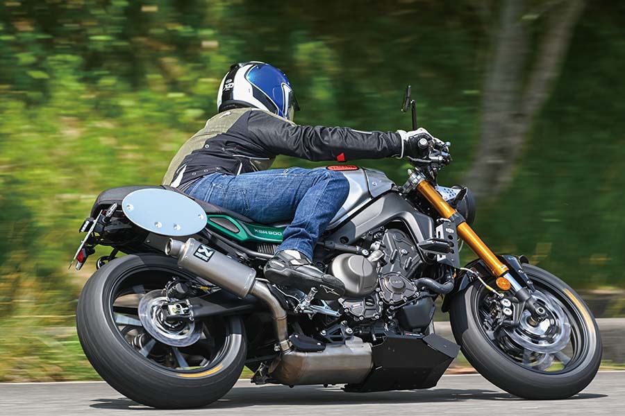 XSR900の純正バーハンドルからセパハン化されたそれは、スポーツライディングを意識させるものの、その位置は純正より低められるがXSR900GPよりは高め。純正比30mmバック/10mmアップで設定されたバックステップとともに、街中からワインディングまで、ポジションの収まりの良さにこだわり、快適なライディングに大きく寄与するものだった。