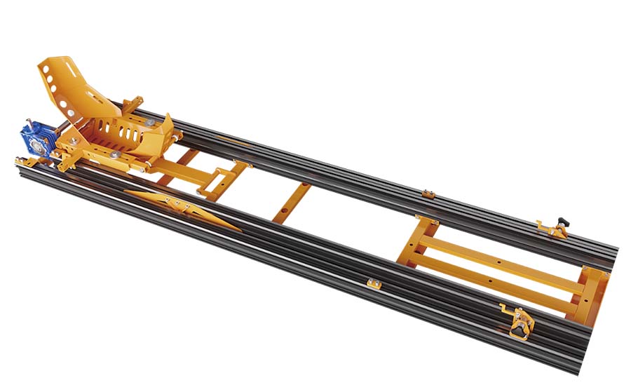 今回紹介するのはHRMが主力製品として扱うAUN200(写真上、ラインナップにはさらにコンパクトなAUN100[全長2100mm]もある)で、写真下はその寸法図だ。特に強度が要る一部にはスチールも使うが、本体の主要をなすレール部はアルミ製で巻き上げベルト部は強化ナイロン素材。本体全長は2500mmで全幅は557mm。本体重量は85kgで対応ホイールベースは2000mmだ。