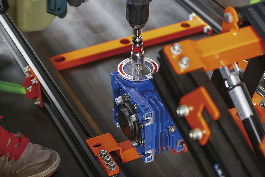 レール基部にあるギヤユニットでベルトを巻き上げる。