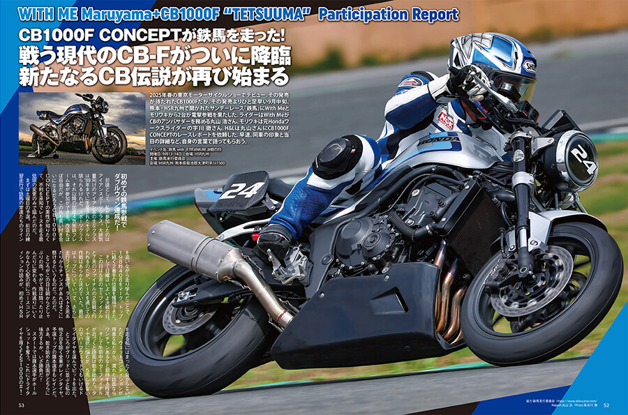 そしてもうひとつの注目は、市販車の発表直前に九州・HSRで開かれたサンデーレース“鉄馬”に参戦した、CB1000F CONCEPT。ライドした2輪ジャーナリスト・丸山 浩さんによるレースレポートのほか、同車の詳細もお届け。CB1000Fを購入してスポーツライディングを楽しみたい皆様に、参考となること請け合いです。