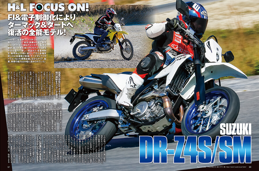 このほか、2000年代前半にデビューし好評を博したDR-Z400S/SMのエッセンスをそのままに、現代に復活したDR-Z4S/SMの試乗レポートや、11月の最終戦を前にますます熱気を帯びるJD-STER第3戦の模様、各所で開かれ注目イベントの模様を一気に掲載!