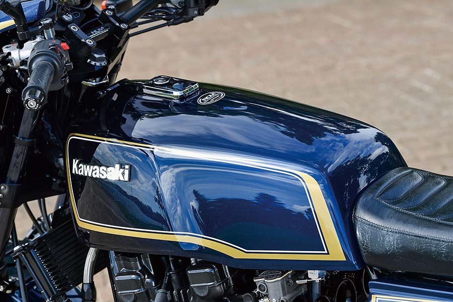 外観はZ1000Mk.Ⅱの純正ルミナスダークブルーで再塗装。ビキニカウルもこのカラー&パターンに沿って装着している。