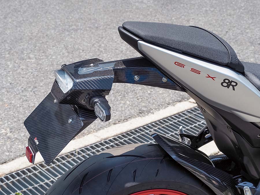 このようにGSX-8Rをワンステップ以上も高質なイメージにしてくれるストリートボディワーク、それぞれの機能やルックスをひとつひとつ楽しむもよし、この車両のように組み合わせていくのもよしなのだ。