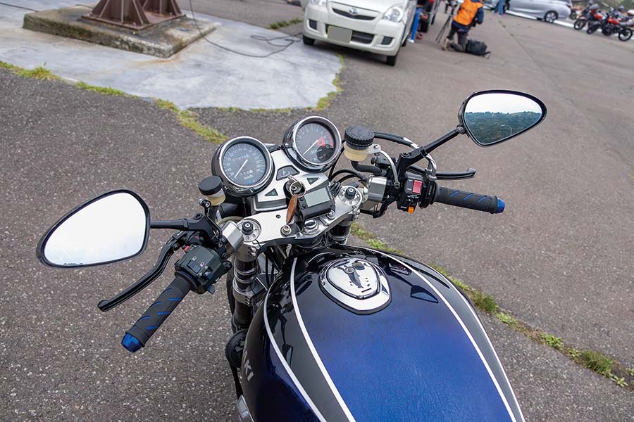 「数年前にブルドックさんで車両を買って、手を入れながらサーキットもストリートも走って楽しんでいるんです。最近はサーキットは少し減りましたけど」と、きったんさん。セパレートのハンドルは走りの象徴的な仕様でもあった。