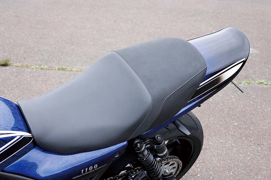 「やっぱり専門店は勘どころをよく知ってられますから、そうしたところのパーツを調べて、勉強しながら付けています。スイングアームもブルドック・和久井さんにお願いして、クリアランスもしっかり出してもらったんです」