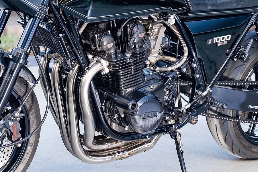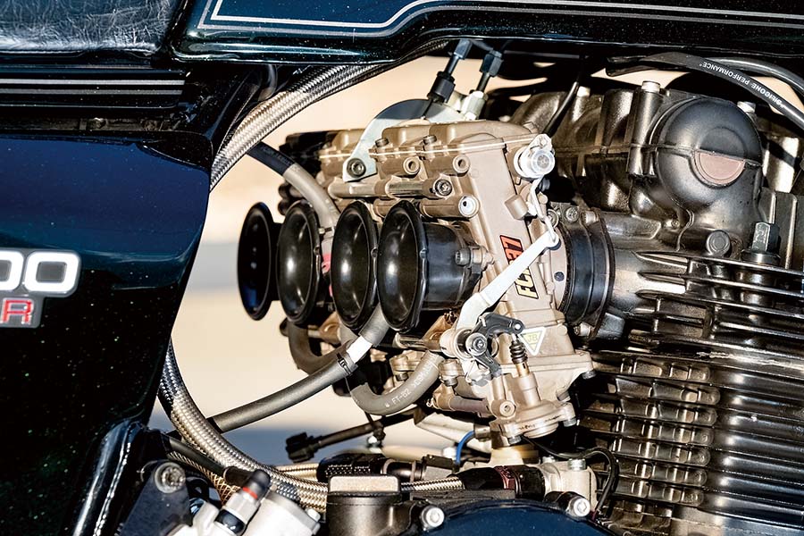そのオーダーに対して寺田さんは“軽さ、乗りやすさ、格好良さ”を提案。そこに使われたのは、アニーズの定番と言える仕様だった。エンジンは鍛造ピストンでの1200cc仕様、これはトルクが出せて神経質な感じはなく、スロットルの開け閉めで乗れる余裕も生んでくれる。FCRキャブレターの口径をあえてφ37mmとこの排気量に対しては小径として低回転からの付きを良好にするのも同じ(ファンネルはそのZ1のロングと異なり、Z1-Rではショートを選んだ)。