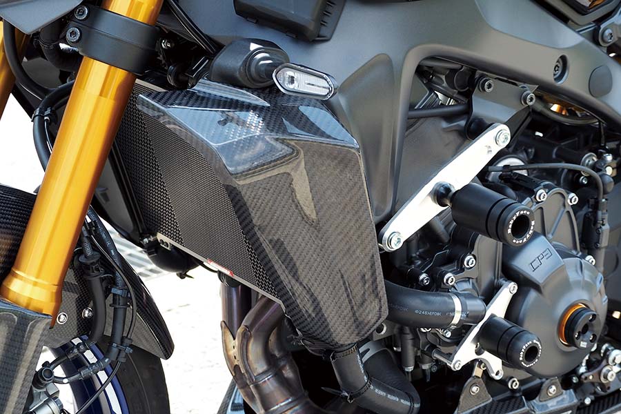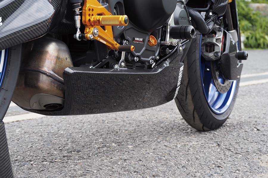 マフラーの集合部や後半部とカット形状を合わせて整形したアンダーカウルは4万4000円〜6万9300円で、'24年型以降MT-09/SP、'21〜'23年型MT-09/SP、'24年〜型XSR900GPにも適合するものだ。