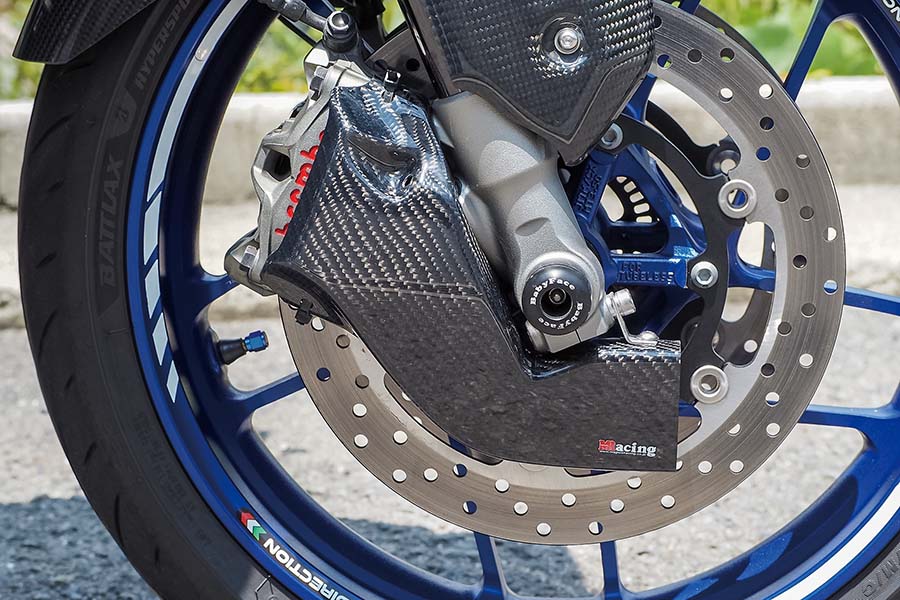 装着とともに機能を追加するものとしてはフロントキャリパーへ積極導風するキャリパークーリングダクト、整流効果とともにサーキット走行時などに必要なオイルキャッチ効果を持つアンダーカウル。ライダーのホールド性を高めるタンクエンドがある。