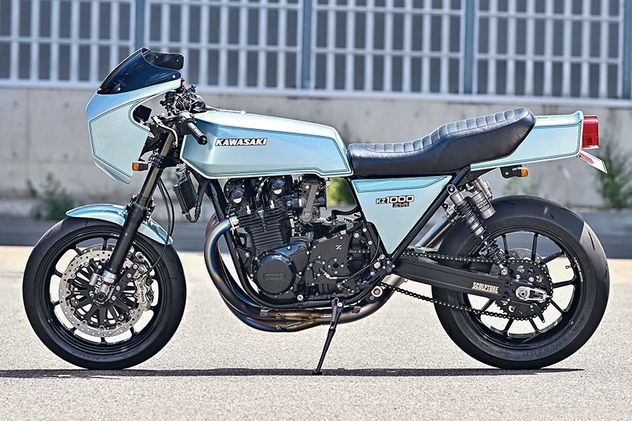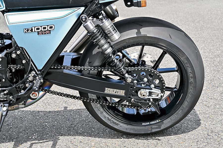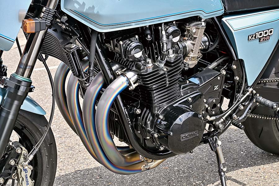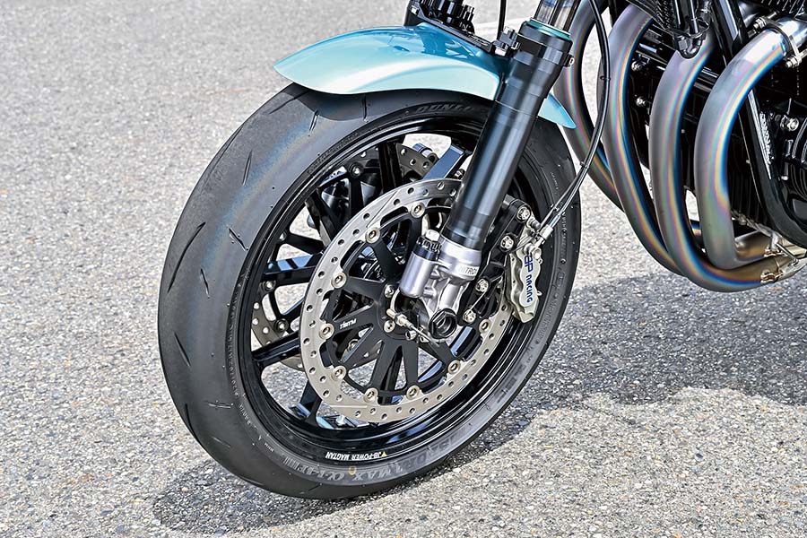 ZRXやゼファー系のオーナーさんでもいらっしゃるようなサーキットを目指すというのでなく、ここではあくまでもストリートが対象。当店からも近い岐阜は山道も峠も多いですから、そこでコントローラブルに、快適で流せる感じで乗れることを主としています。高速道路でも新東名なら120km/h区間であればその制限に合わせた速度で、隊列を組んで走るのがいいという具合。ですからエンジンはこれでいい。その分ほかのパートで軽くなったりしていますから、負担も軽くできていると思います」