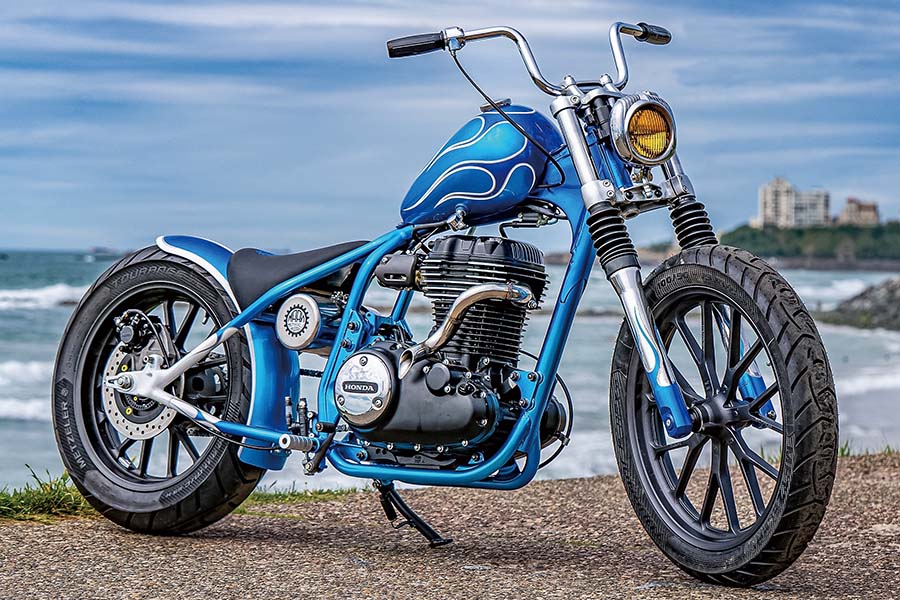 エンジンには手を入れないのが前提としても、この変化のしようは確かにすごいと言わざるを得ないだろうか。'22年にCMX500でチャンピオンとなったMAAN Motocicli“ハチマーン”は日本の神道にちなんだ名前(八幡:はちまん)から来る闘志を日本のボバースタイルにオーバーラップして複雑さとシンプルさを絶妙に組み合わせる。ステムやフロントフォークは純正のままだ。