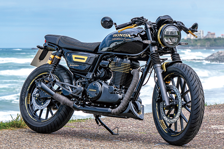 シンプルなGBだからこそ狙える、かつ違和感がないカフェレーサースタイル。ブラックに染め上げることがその格好良さのひとつだったものに、ゴールドのアクセントを入れて時代を超える。そしてアンダーカウルや削り出しボディのミラーなどの進化したパーツ。これらがブリックス=成熟の度合いを示しているとも言えそうだ。このスタイルのGBも、純正ラインナップに出てきてもおかしくないところがまたいいのかもしれない。