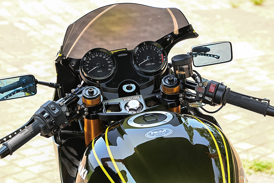 仕様はサンクチュアリーの母体となるノーブレストの各パーツを軸に、シンプルで派手さをあえて抑えながら、RCMらしいびしっとした仕上がりを得ること。ところでRCM主力の空冷Z系と異なる現代車のZ900RSに手を入れる場合、何に気を遣うのだろうか。