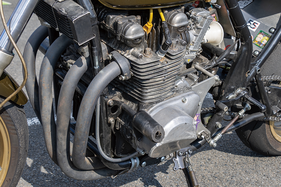 エンジンは1973年式Z2を元にZ1の66mmストローククランクを組み、φ75mmピストンを組み合わせての1166cc仕様。ヘッドはSTDバルブにキブルホワイト製バルブスプリング、ヨシムラST-2カムを組み合わせる。ハーネスはワンオフして点火はウオタニ。キャブレターはFCRφ35mm、マフラーはZ用エキパイにテールパイプ以降をワンオフしたものが付けられる。