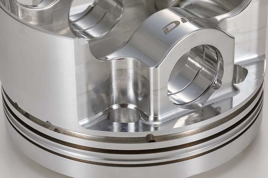 ピストン裏面、ピストンピン横スペースも、高剛性な金型を使用して細部まで肉抜き加工。緻密かつ最適なバランスで軽量化が施されている。
