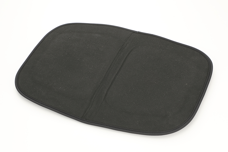 一方の裏地には、まずバイク向けとして開発された滑り止め素材をそのまま採用。一般使用時も椅子などからのずり落ちを防ぎ、安定した着座姿勢をサポートしてくれる。